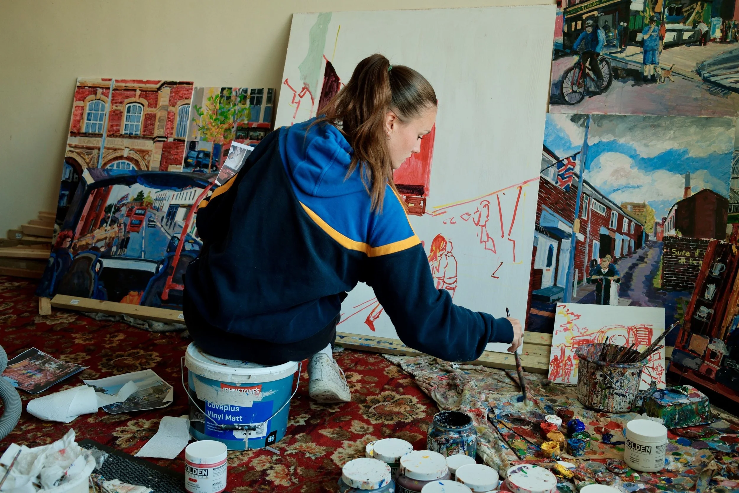 Over the last 8 years I have had 8 solo exhibitions and try to make paintings about the places in which I’m living and working. I find and juxtapose images that speak of things that are hard to define in prose. What is community? What is Irishness? What is Britishness? I absolutely do not want to create literal manifestations of these questions but instead try to get under the multi layered skin of what these things are and what they mean to us.